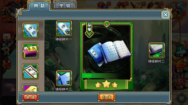 玩家在抢夺界面可以看到当前已有的宝物碎片,根据现有的宝物碎片去争夺其他玩家的宝物碎片,当集齐了足够的宝物碎片玩家就可以合成对应的稀有宝物哦,宝物分为典籍和坐骑两类,给英雄装备上后可以大幅提高能力。